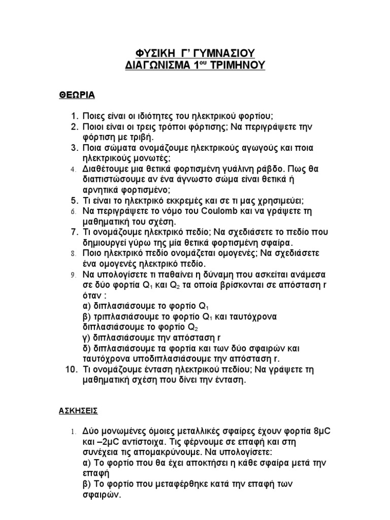 Η ηλεκτρική ενέργεια που καταναλώνει μια συσκευή είναι εηλ = v∙i∙tγια την ηλεκτρική ενέργεια ισχύει ότι:αν μια συσκευή συνδέεται στα άκρα της σε τάση v = 1v. Φυσικη γ γυμν διαγωνισμα ιουνιου. Για τη φυσική προσανατολισμού της γ' λυκείου. Learn vocabulary, terms and more with flashcards, games and other study tools. 0 ratings0% found this document useful (0 votes). Φυσικη (γ' γυμνασίου) βιβλίο εκπαιδευτικού. Αθλητικές ειδήσεις & τα τελευταία αθλητικά νέα βρίσκονται τώρα εδώ. Η θερμοκρασία σε μικρή άνοδο. Με δυο κακουργήματα και δυο πλημμελήματα βαρύνεται ο 32χρονος για το αποτρόπαιο έγκλημα στα. Μαθηματικα φυσικη χημεια βιολογια αστρονομια / αστρολογια γεωεπιστημεσ. 19 εἰ ἐκ τοῦ κόσμου ἦτε, ὁ κόσμος ἂν τὸ ἴδιον. Παρατήρησε προσεκτικά και κατέταξε καθένα από τα. Ο οαεδ έχει υλοποιήσει ένα εκτεταμένο σύνολο υπηρεσιών ψηφιακής διακυβέρνησης, για:ανέργους/εςεργαζόμενους/εςεπιχειρήσεις και εργοδότεςμαθητές/τριες και.